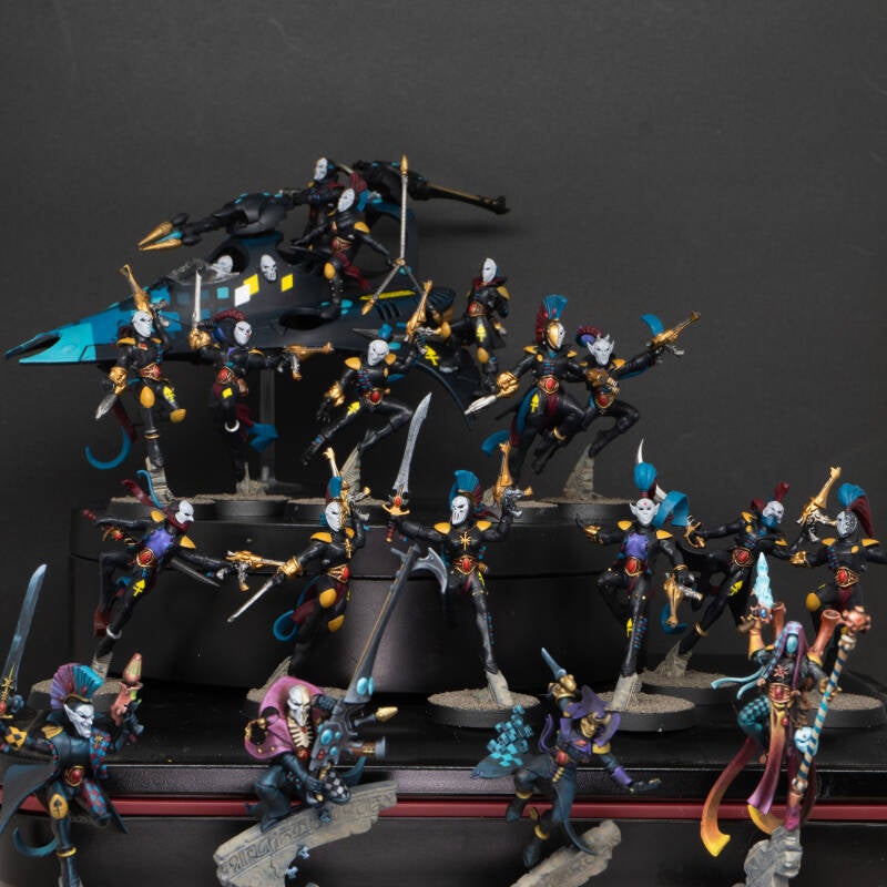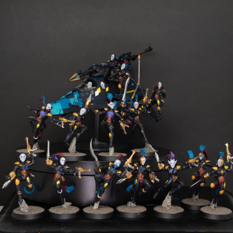 4 of these harlequins are painted in Tier 2 high quality tabletop. Shadowseer / Death jester / solitaire / and one of the Troupe.
